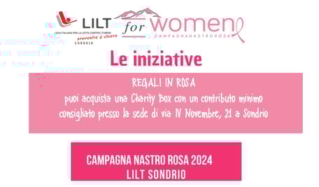 Tante le iniziative in programma anche nella provincia di Sondrio: visite senologiche gratuite, spettacoli teatrali, il coinvolgimento in alcune delle manifestazioni dell’ ottobre in Rosa promosse da altre associazione e comuni, ma anche il coinvolgimento di scuole e aziende.